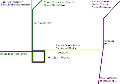 Route 36 will not provide service to the base. Instead the route will only service the segment north of Britton Plaza. A connector shuttle will provide service from the Plaza to the Route 4 via Euclid Ave.