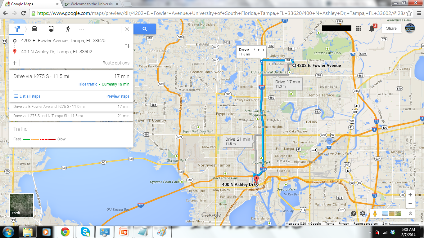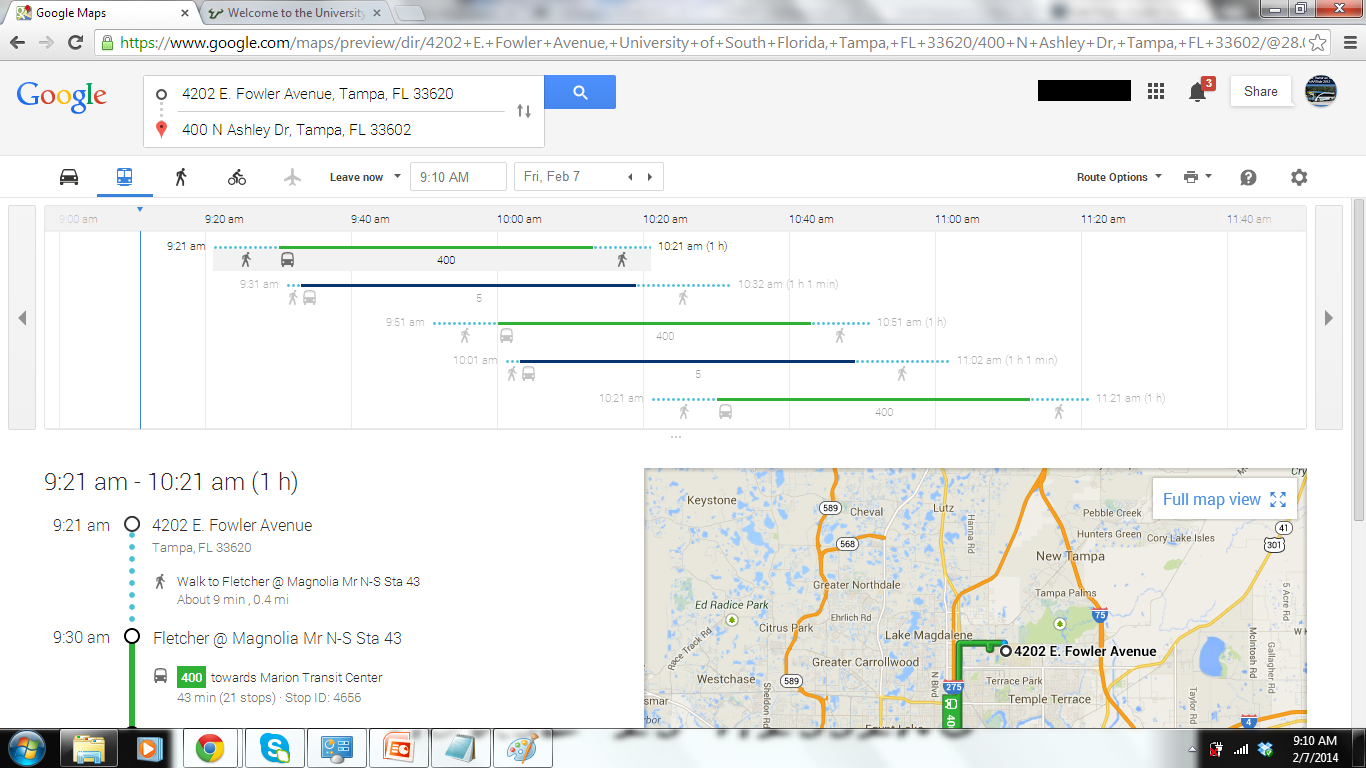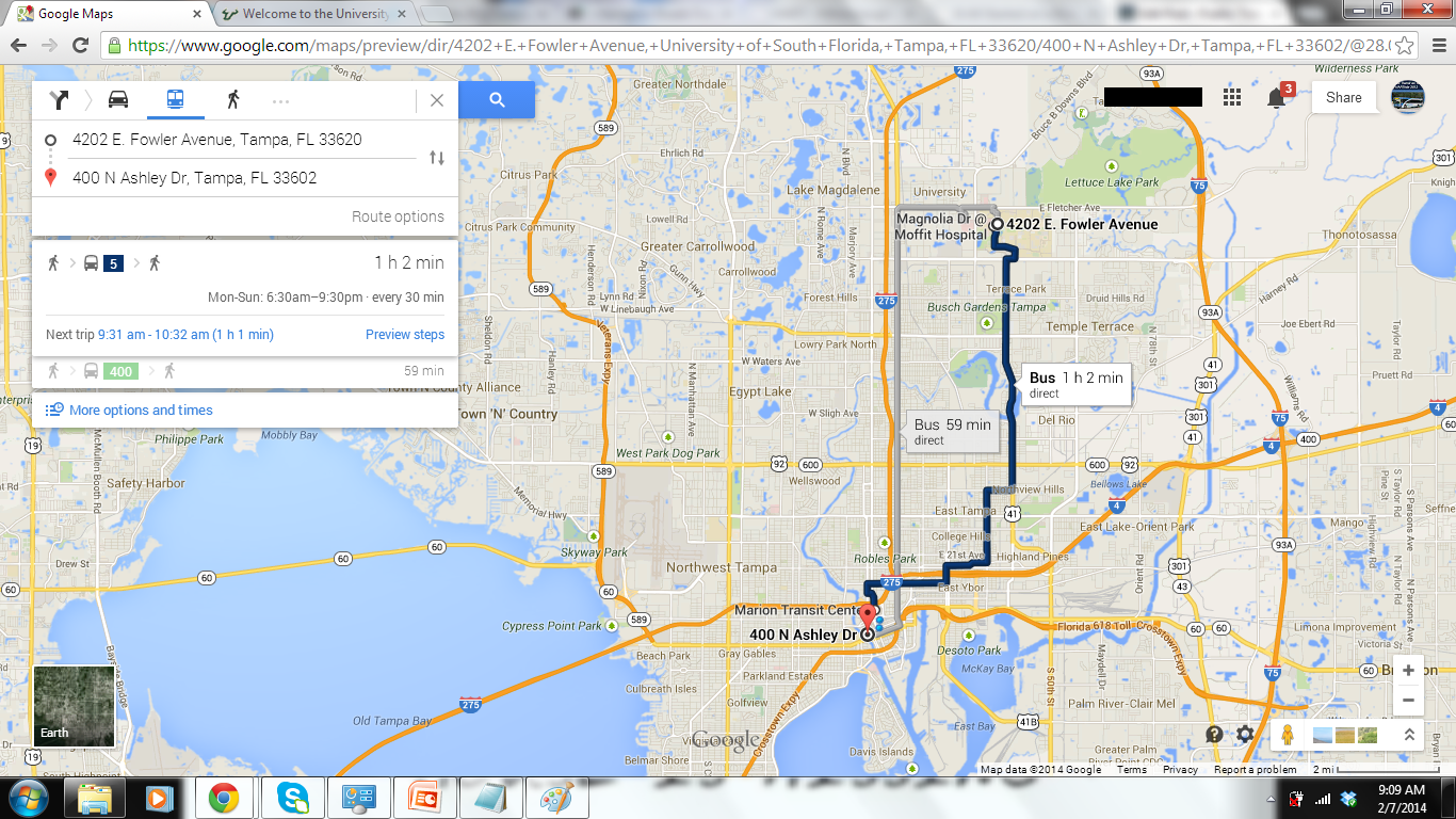 Now, let’s do a quick “to” and “from” using the search box. For this demonstration, I’ve chosen the USF Tampa Campus as my origin, and the Rivergate Tower at 400 N Ashley Dr in Downtown Tampa as my destination.