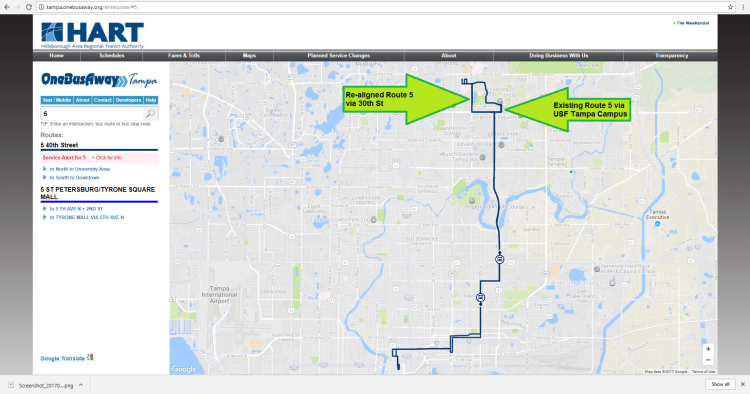 When you open the OBA app, or view the desktop site, you’ll notice that some routes will have additional placeholders for the post-restructured routing and stops. The existing routing and stops will be viewable until October 8, 2017 – when the system restructuring takes effect – but HART is getting the work done now so that customers can be able to catch a bus without worry once the restructuring takes effect.