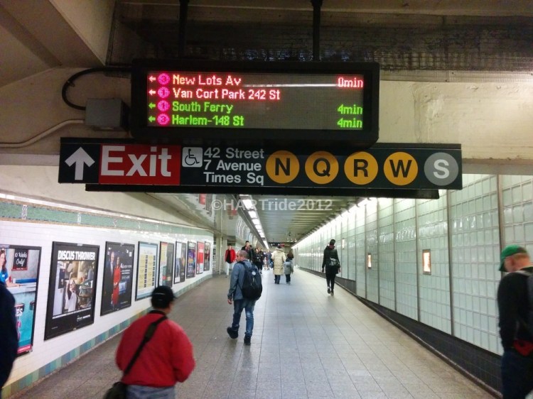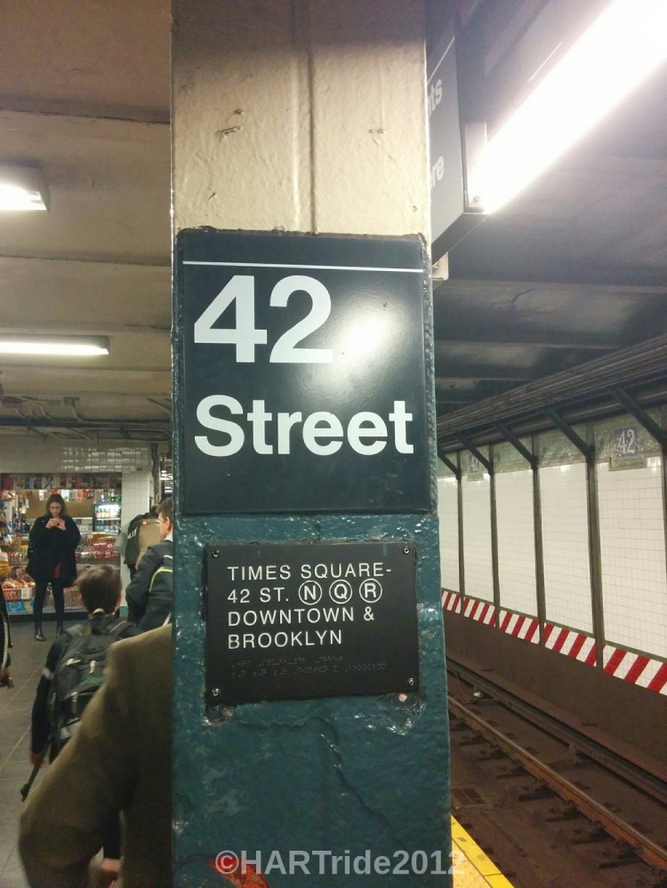 Navigating the Times Square – 42nd St Station, which lies just a stone’s throw away from the famed intersection of Broadway, 7th Ave, and 45th St, can be a bear. If you don’t really know where you’re going, you can get lost. Fortunately for me, all I had to do was follow the signs to the (N), (Q), (R), (W). platform.
