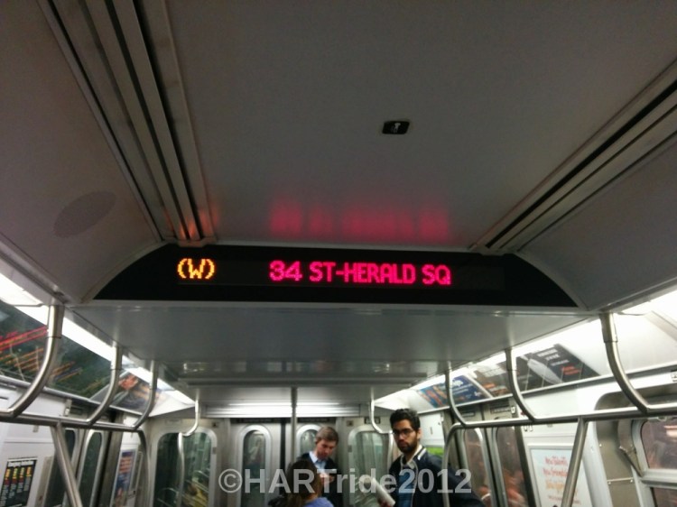It took maybe about 8 minutes before the (W). arrived. While waiting, I saw (Q) Express train & an (R) Local train stop at the station. I wasn’t so much looking for photos of the (Q) & the (R) because of the time crunch. I can always do some bus fanning outside Cooper Union if I had extra time. Once the (W). train did arrive, I was on my way again! The train wasn’t really crowded at all, unlike the (1) train that I boarded earlier, and the trip went without incident – all smooth sailing to 8th St!
