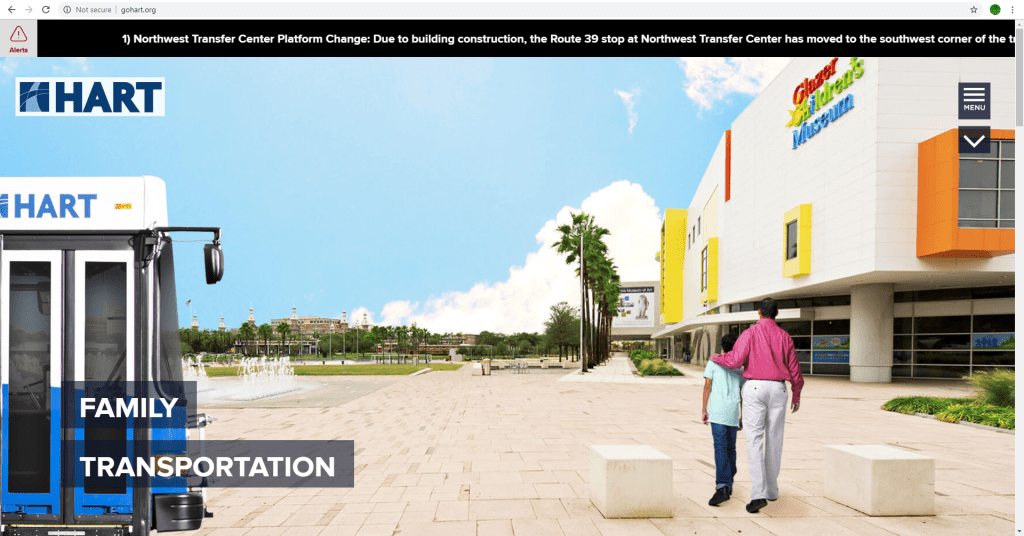 For advisories affecting Hillsborough Area Regional Transit, please visit the agency’s Alerts & Detours page. The site homepage & as well as the OneBusAway interface, have been updated to include many short-term & some long-term service changes & detour notices.