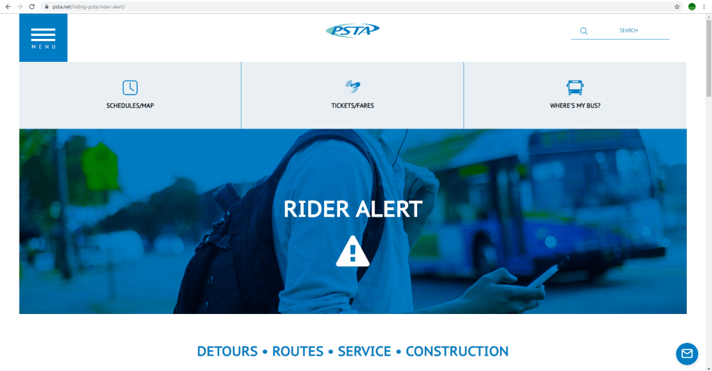 For advisories affecting the Pinellas Suncoast Transit Authority, please visit the agency’s Rider Alert page. Short-term detours & other service interruptions can be found on the agency’s special Twitter Feed, @PSTAalerts, which is embedded to the page.