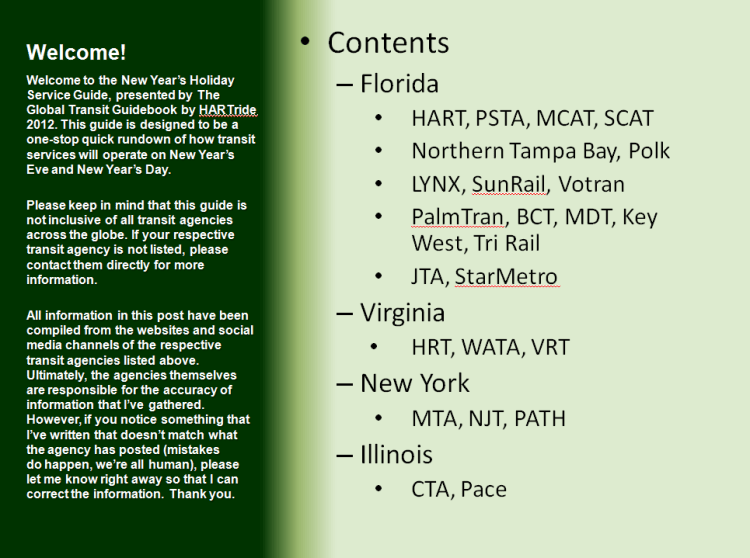Please be sure to bookmark my website: globaltransitguidebook.com | Contact Me.