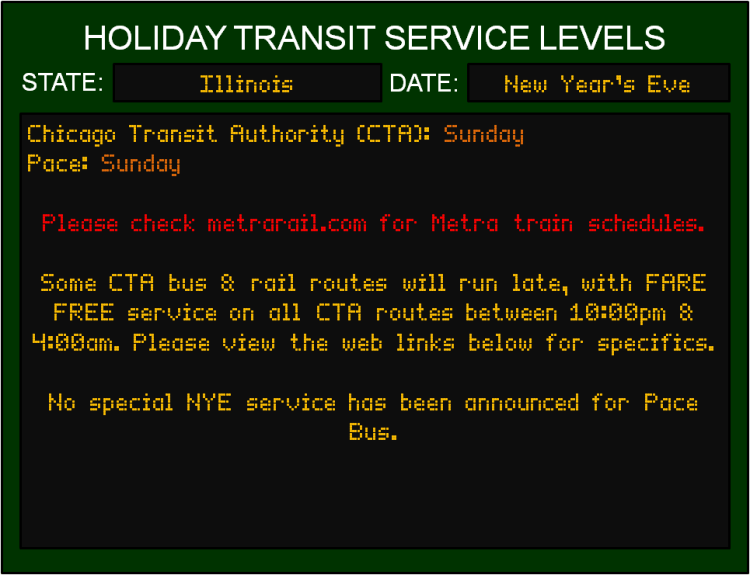 2018 is fast approaching, and I know many are carefully planning their weekend so as to not become stranded if they use transit.