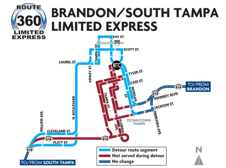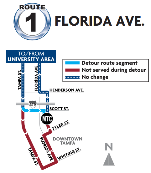 Routes 1, 7, 8, 19, 30, & 360LX will be detoured! Please plan your trip accordingly! Below is a listing of how buses will be detoured, along with respective route maps. OneBusAway WILL NOT BE AVAILABLE FOR THE ROUTES AFFECTED, SO PLEASE REFER TO POSTED SCHEDULES FOR DEPARTURE TIMES!!!