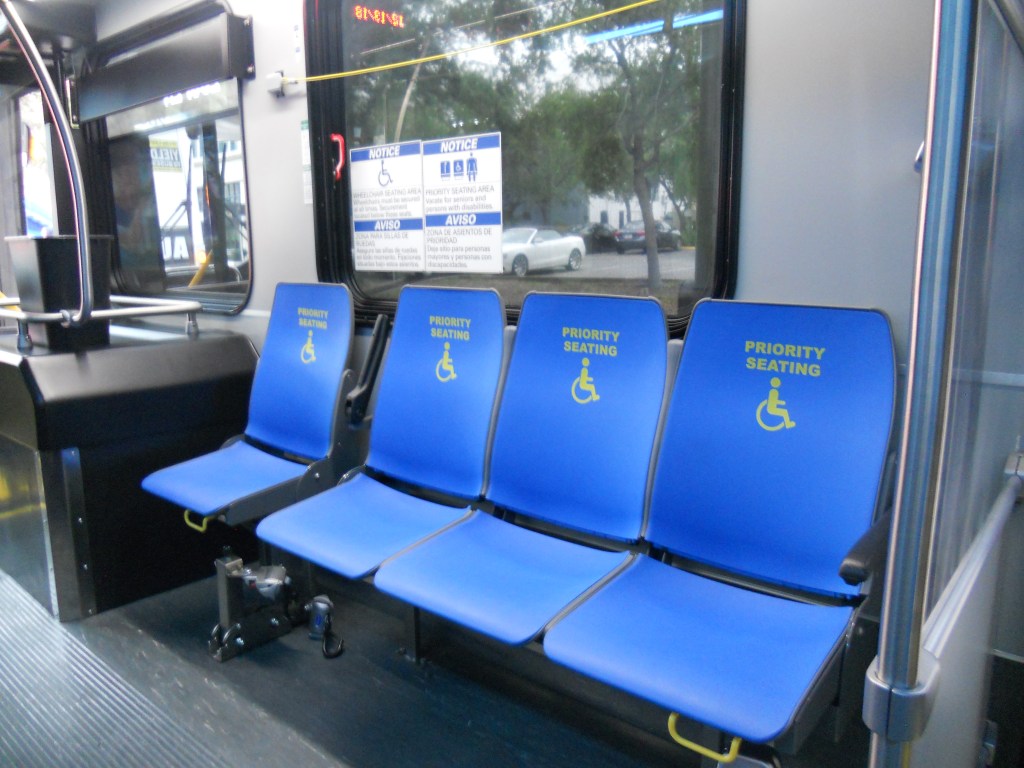 Pay your fare, locate an open seat & enjoy the ride! If you brought a bike on board, you may want to sit closer to the front of the bus so that you can keep an eye on your bike. Please keep in mind that the seats closest to the bus operator may be designated as Priority Seating, meaning that those using mobility aids (including wheelchairs), the elderly, & expectant mothers will have seating priority. You’ll want to offer these seats to the elderly & expectant mothers. If someone using a mobility aid boards, you may be asked by the bus operator to vacate your seat if you are seated in the Priority Seating area.