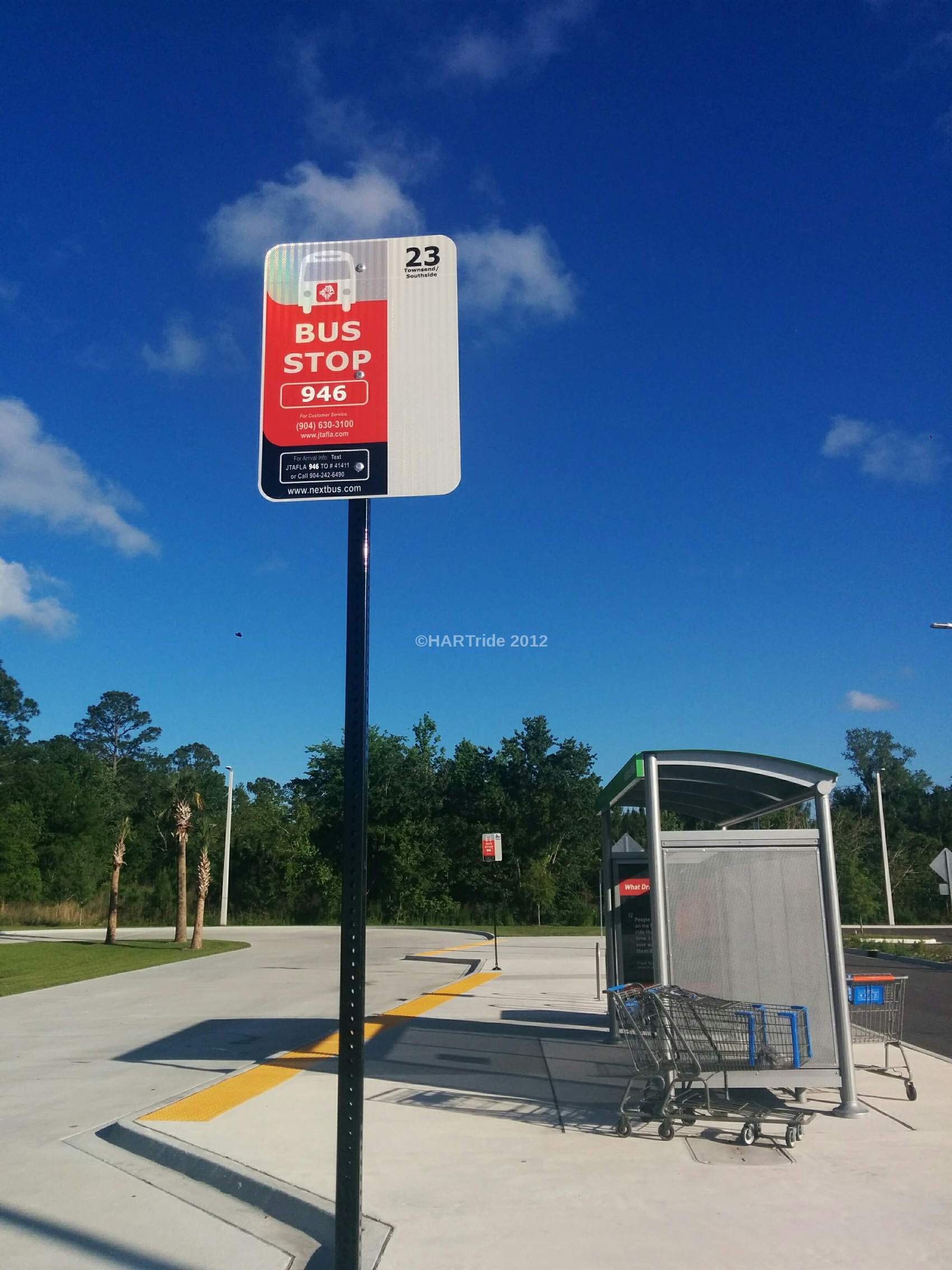 Locating your respective origin bus stop can sometimes be challenging, because not all stops look the same. Some stops can be distinguished by a simple concrete pad or a sidewalk with a designated bus stop sign (like the one above), while others will have the designated sign – along with a bench or even a covered shelter. It is very important though that you see the designated sign, as in most cases, the bus operator will only serve a bus stop with the designated sign posted at the location.