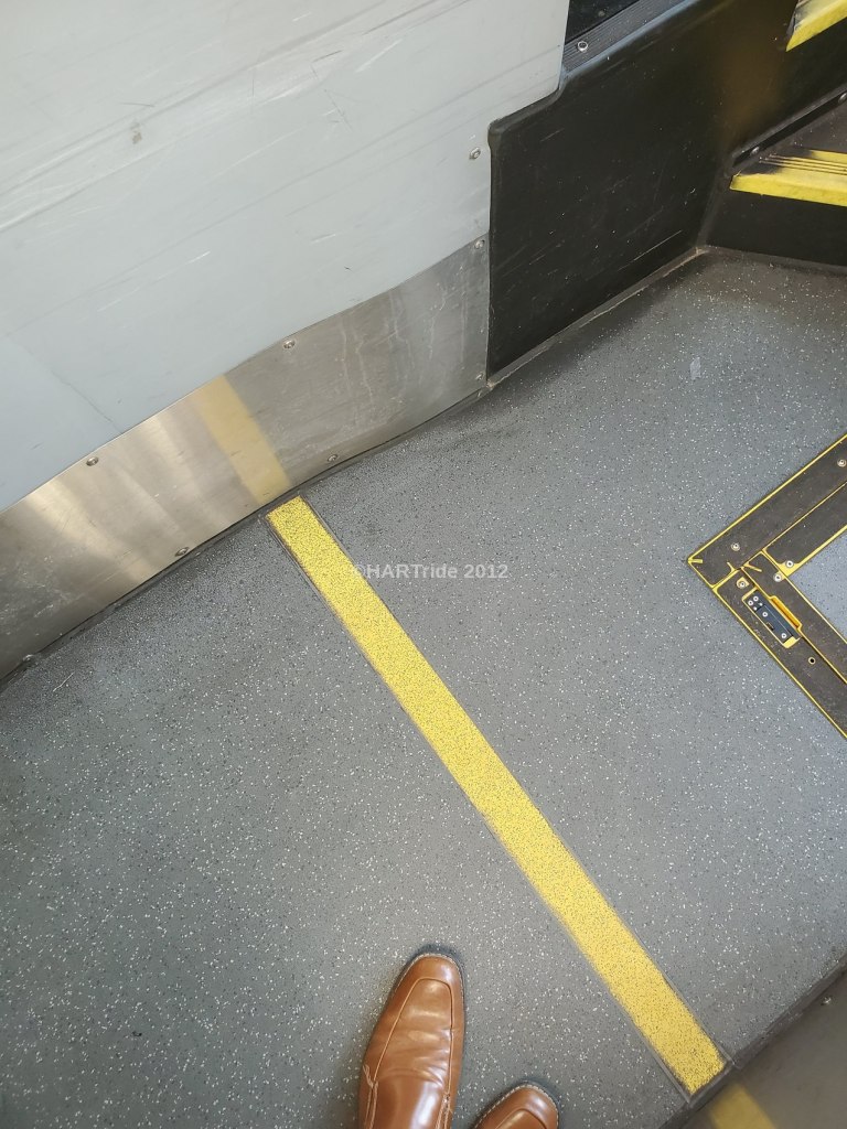 - When the bus becomes standing room only, it’s important not to step forward of the yellow safety line that is located just behind the operator’s seat. This is so you’re not encroaching upon the operator’s field of vision – especially if he or she needs to look towards the right for any reason. Additionally, you risk violating the operator’s personal space if you do. Also, you don’t want to be in the way of the wheelchair ramp if it needs to be activated.