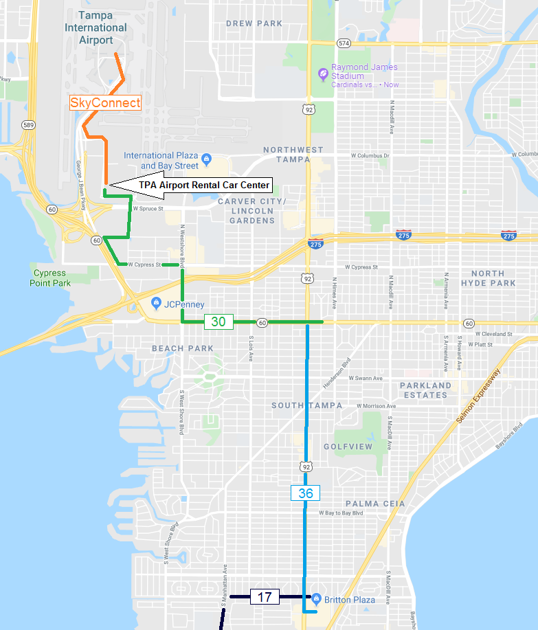 South Tampa bus service was significantly changed due to Mission MAX. Route 4, which had limited ridership, was completely eliminated, while lesser used segments of the 19 & 36 south of Britton Plaza were split off onto other routes. The 17 designation, which was once used for a north-south local route between MacDill Air Force Base & the old Tampa Bay Center Mall via MacDill Ave during the 90s, was reused for the former 19 segment that served Manhattan Ave between Port Tampa City & Britton Plaza. The WestShore Blvd branch of the 19, meanwhile, was also eliminated due to limited ridership. The segment of the 36 south of Britton was integrated into the cross-county 360 Limted Express route that runs between MacDill & the JC Handly Park-N-Ride complex in Bloomingdale.