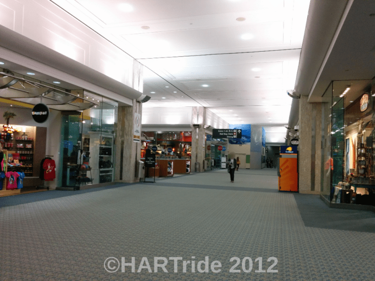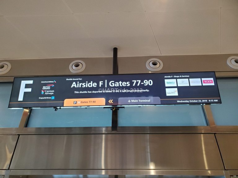 Because I was able to use the Remote Bag Check option at the Rental Car Center, my time traveling through the main terminal was only about 10 minutes. I hopped off the SkyConnect train & proceeded to the escalators to Level 3. From there, I headed immediately to the Airside F shuttle bay – though I did pause for a moment at a nearby seating area to ensure that my boarding passes were secured. During my walk through the main terminal, it was definitely nice to see all of the shops & eateries completed. While I did want to grab something quick to snack on before my flight, I decided that the best option was to get over to Airside F & clear security first before I did so.