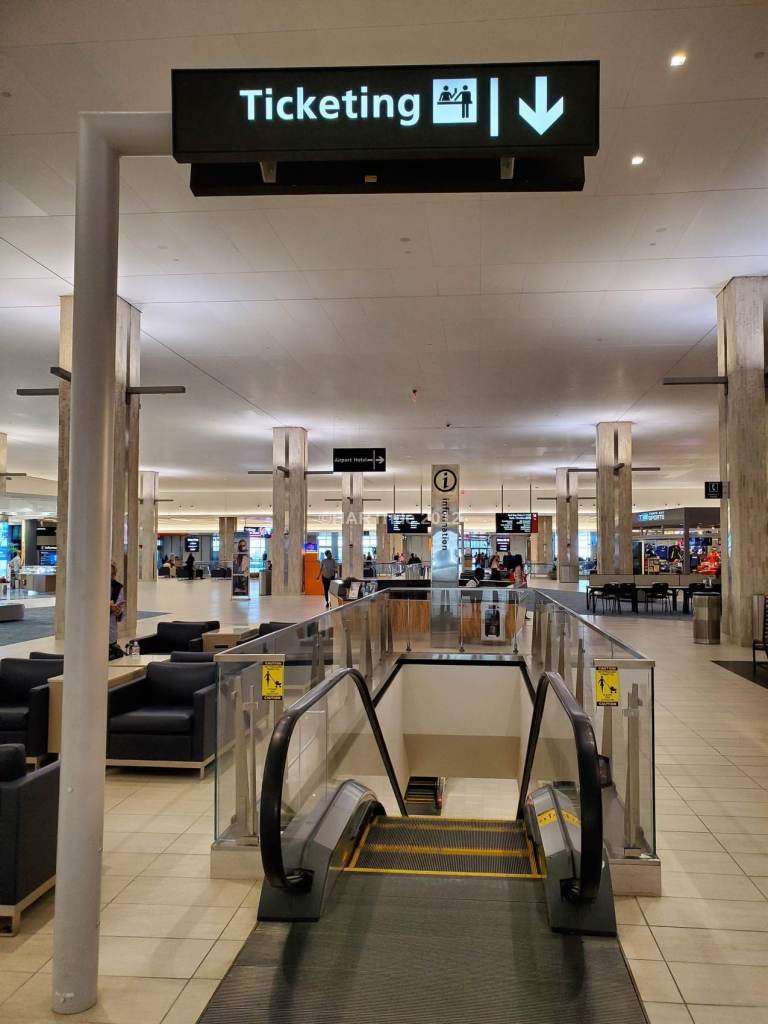 Now…let me caution you, because I did say many cases. First off, only domestic flights can be checked in at this location, & secondly, only selected airlines allow for such remote check-in. So if you fall outside of this category, then you’ll need to take the SkyConnect train to the main terminal & then take the escalators to Level 2 for check-in. However, for those who do fall into this category, Remote Bag Check at the Rental Car Center saves you the time & hassle of going down to Level 2 in the main terminal for check-in. It certainly did for me! Once I was completely checked in & dropped off my rolling suitcase, I grabbed my carry-on bags & immediately proceeded for the SkyConnect train to the main terminal.