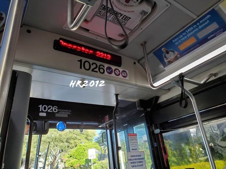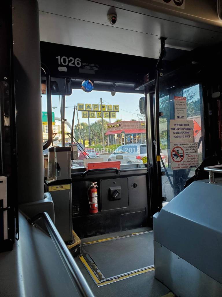 While waiting for # 1026, I noticed that the wait time was increasing due to a delay along the route in downtown Tampa. Knowing that my flight was not until 11:42am, with boarding call commencing at 11:12am, I had plenty of time to make it to the airport if the bus broke down or something. Fortunately, it did not.