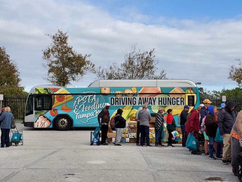 In another example of public transit making a difference in our diverse communities, PSTA partnered with Feeding Tampa Bay to deploy a mobile food pantry at the agency’s facility in northern St. Pete. Since many of PSTA’s riders live at or below the poverty line, having access to food pantries often mean the difference between having a meal during the day & not. For the first event in July, riders lined up as early as 6am to get one complimentary box of food – which includes fresh bread, fruits, & veggies. The second event in December was equally a success, & there are plans for another in around March or April of 2020 as a result.
