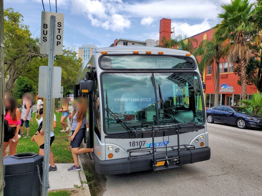 Every year for the past few years now, PSTA has partnered with the St. Pete Pride organization as their official public transportation partner – providing special shuttle service to & from the St. Pete Pride Parade, & even having a specially wrapped bus roll down the parade route! It’s always great to see public transit agencies take part in such great events – especially those that support our wide & diverse communities.