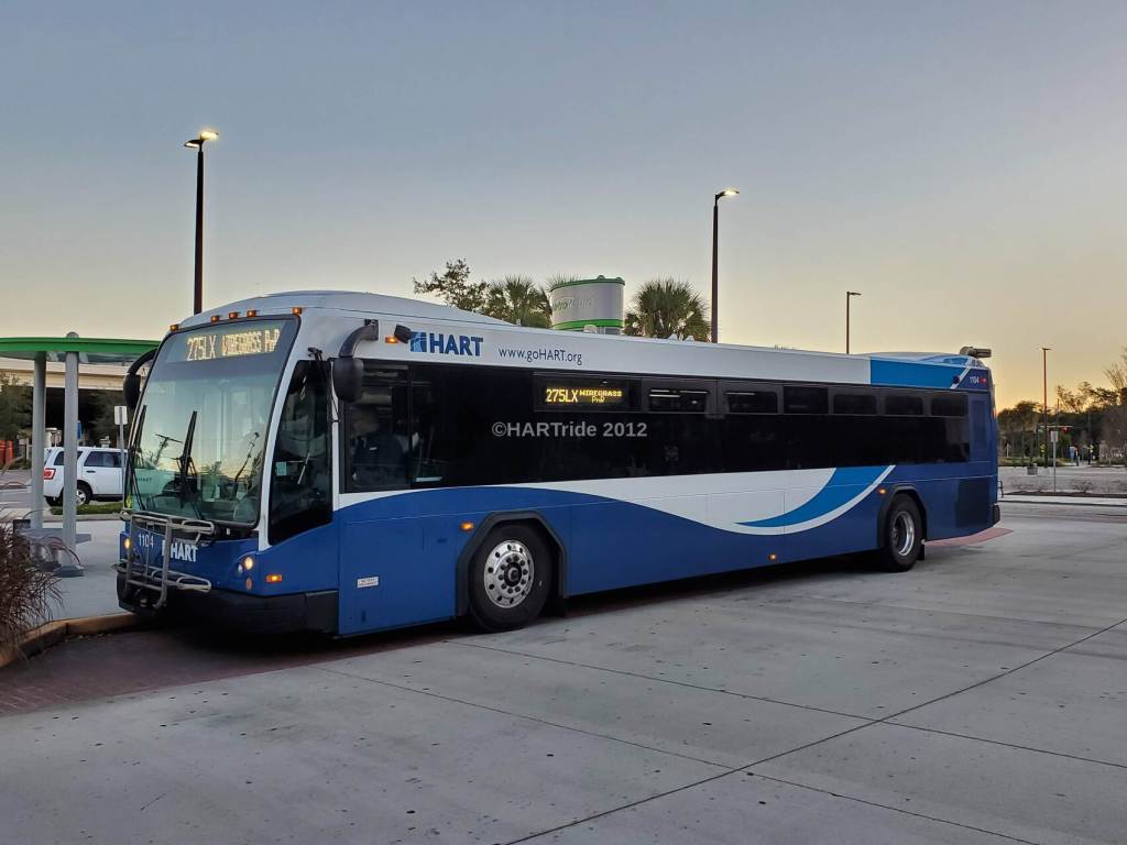 So with that being said, we return back to the Tampa Bay region & profile Hillsborough Area Regional Transit (HART) # 1104, which was one of eight buses that the agency acquired from Sarasota County Area Transit (SCAT). # 1104 entered revenue service on 10/07/2019 & has been on normal assignment on Routes 60LX or 275LX since. On occasion, it will be assigned to Routes 17, 20X, 24LX, 25LX, or 360LX.