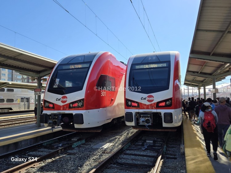 New Caltrain EMUs in San Francisco, CA.