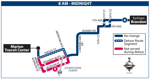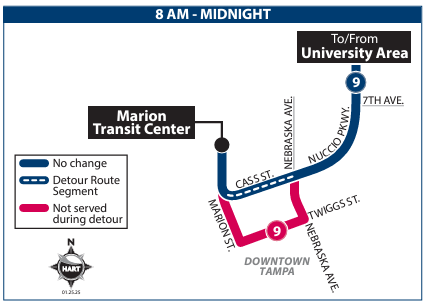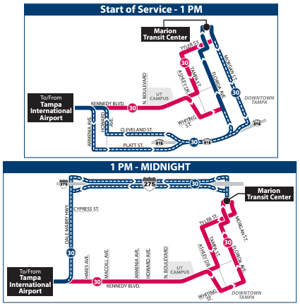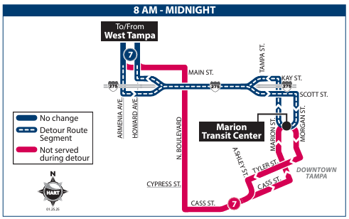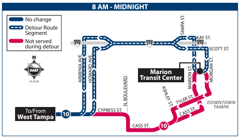 - From 8:00am until about end of service, Cass St & Tyler St will not be served. Additionally, Cypress St will not be served east of Howard Ave. Buses will detour via I-275.