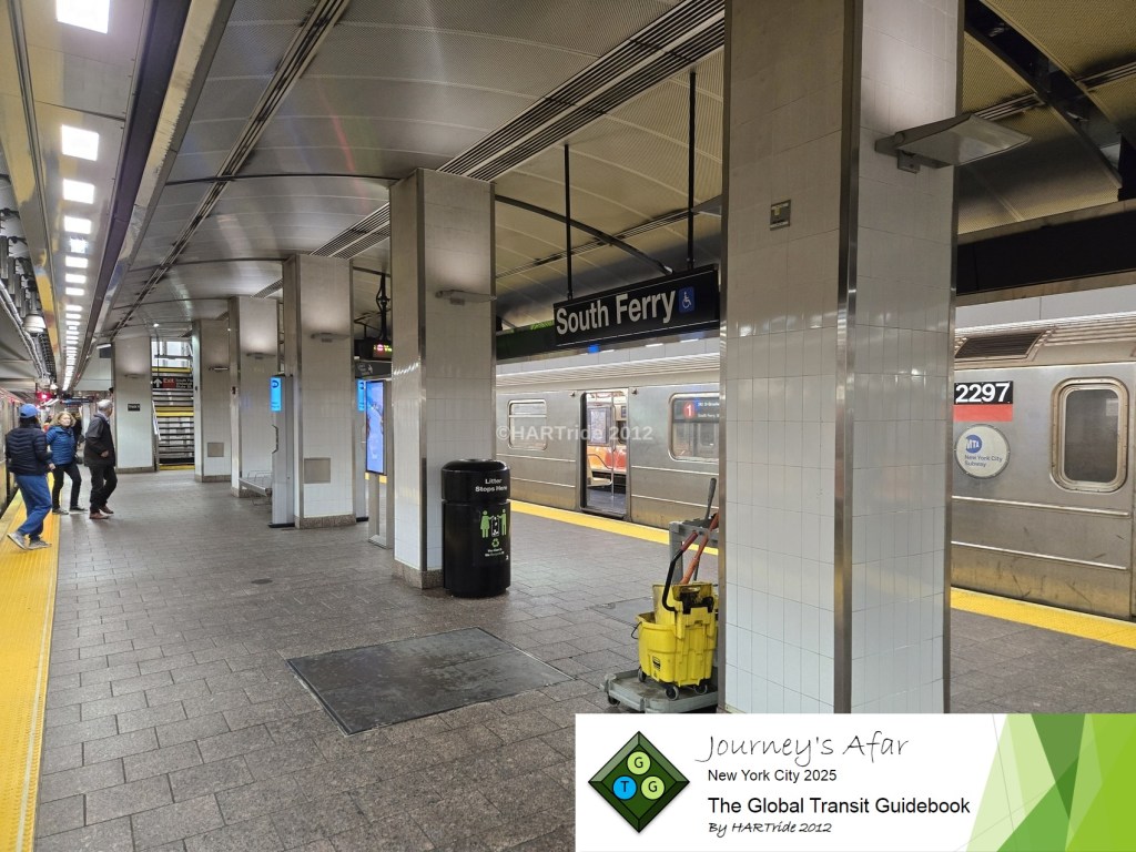 - 2025: South Ferry Newer Platform > Mezzanine level (inside fare control only) > Whitehall St platforms.