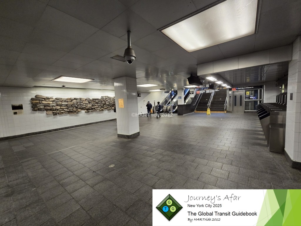 During both of my visits to the complex, the mezzanine level was undergoing some degree of construction. Obviously for 2017, work was still going on to get the newer South Ferry platform back up & running. However, for 2025, it appeared that work was being performed on the artwork wall.