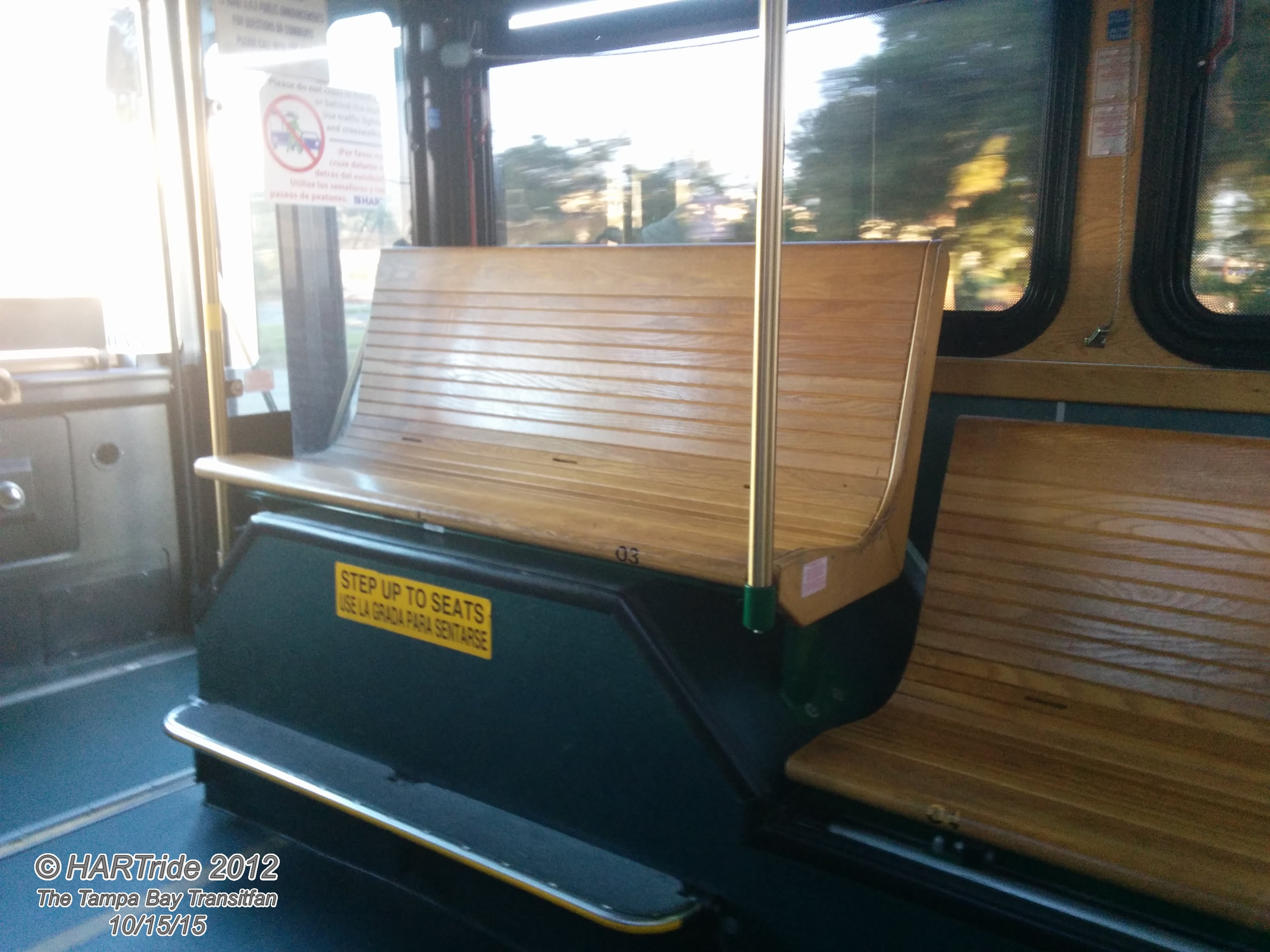 Some transit agencies opt for the seating on top of the wheel well. For HART’s Gillig Low Floor buses, the trolleys are the only buses in their fleet to posses this option.