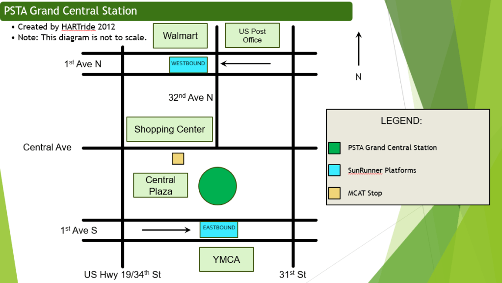 - Area is served by PSTA Routes 19 (daily) & 91 (weekdays only).