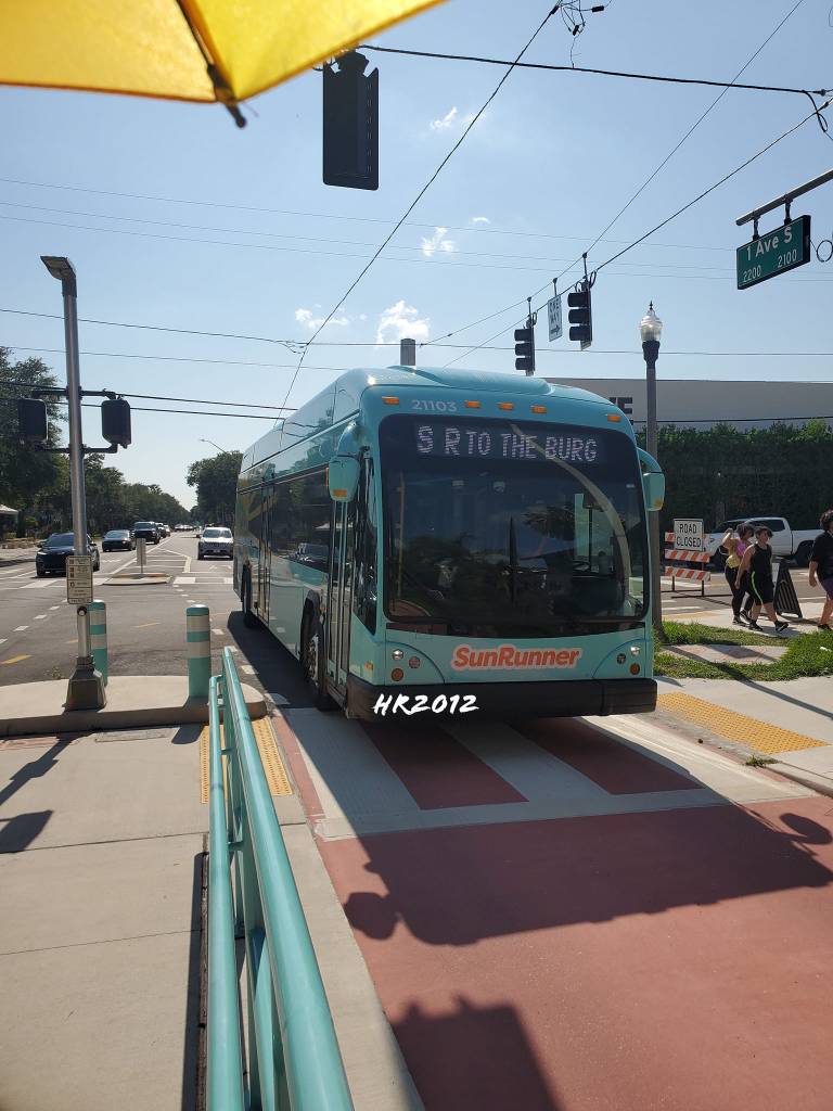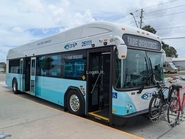 It is to note that while all of these battery electrics look virtually identical to each other. #’s 26108 through # 26119 differ in the sense that they’re equipped with the plug-style rear door option that the SunRunner units possess. However, these buses can be used on any PSTA fixed route – as they aren’t branded for Spark service.