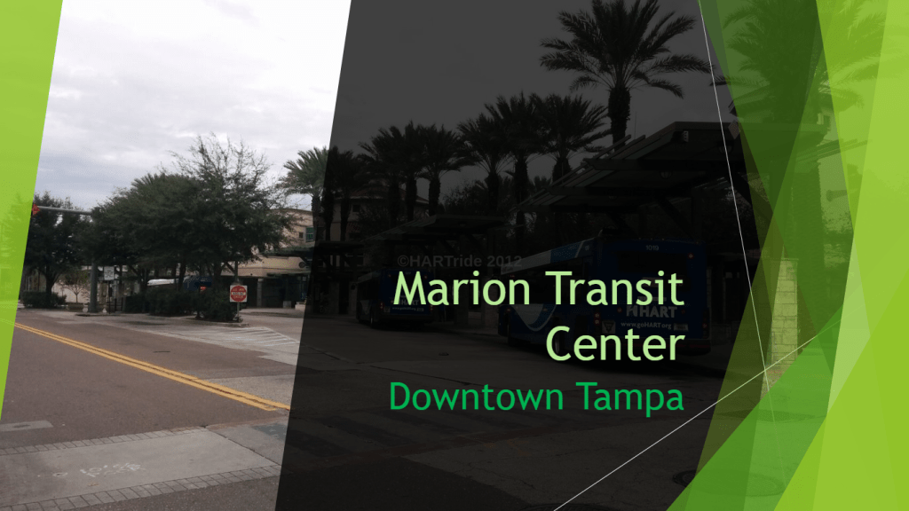 The Marion Transit Center happily sits on the northern end of the Marion Street Transitway, which was constructed during the 1980s. The MTC serves nearly 15 local and express routes (including PSTA’s 100X and 300X) and includes an array of amenities, including a customer service center, office space, & an array of public art displays. Until the Covid-19 pandemic in 2020, there was also an on-site “grab-n-go” cafe called MTC2, which was operated in partnership with the MacDonald Training Center. In mid-2009, HART began installing television screens in select parts of the transit center to display real-time departure information. In 2023, the former cafe space was converted into the new ticketing office for Greyhound & Flixbus – as the legacy Greyhound terminal on Polk St in downtown Tampa has permanently closed in conjunction with the company’s ongoing efforts to sell its legacy properties.
