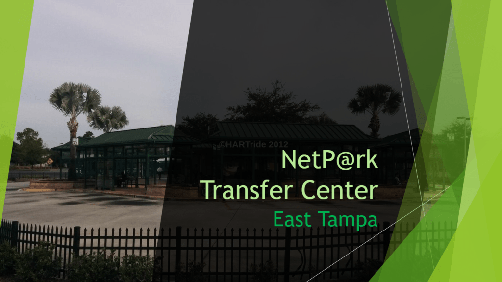 Located in east Tampa, on the site of the NetP@rk Office Center (formerly East Lake Square Mall), off 56th Street & Hillsborough Ave, the NetP@rk Transfer Center is a transfer point for 7 local routes.