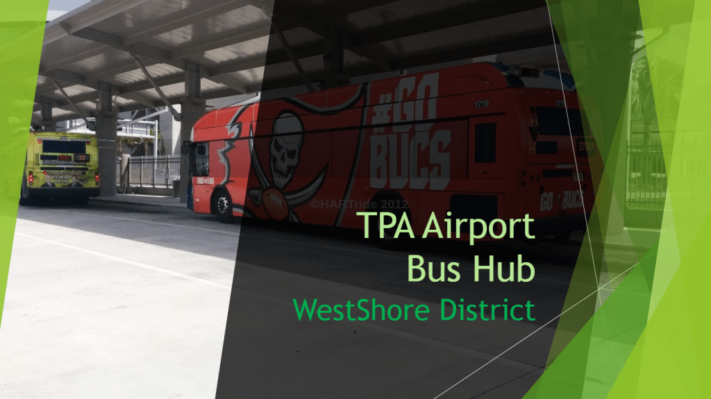 With the massive overhaul and expansion of the Tampa International Airport complex, a bus hub canopy & platform were constructed next to the new Rental Car Center. This facility is able to accommodate up to seven 40-foot buses at one time. Customers getting off at the hub to catch a flight can utilize an elevator bank at the northern end of the platform to transfer to SkyConnect trains to the main terminal complex. There is land situated just south of the Rental Car Center to accommodate light rail or commuter rail should Hillsborough & Pinellas Counties finally pass transportation sales tax referenda.