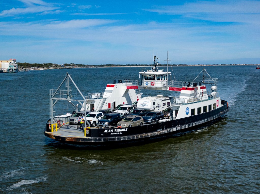 The St. Johns River Ferry vessel, Jean Ribault, crossing the St. Johns River. Photo Credit: JTA.