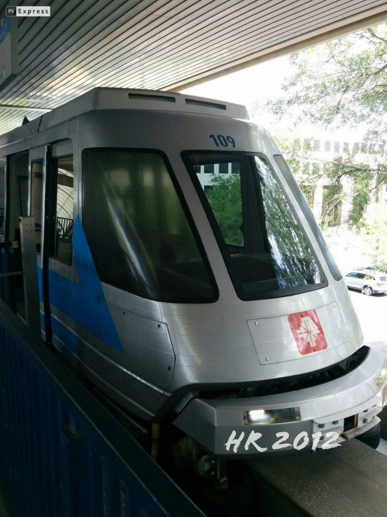 JTA’s Skyway Monorail is an elevated automated guideway that uses paired variants of the UM III monorail vehicles. The vehicles were originally were originally supplied by Universal Mobility Incorporated & my understanding is that there were originally six vehicles that ran on the two-branch system. The UM III technologies were later acquired by Bombardier Transportation in 1989 & the same vehicle type (though single units) operated at Tampa International Airport’s Short-Term & Long-Term Parking Garages between 1993 & 2020. Because the trains are considered obsolete & breakdowns occur often, only two trains currently operate.