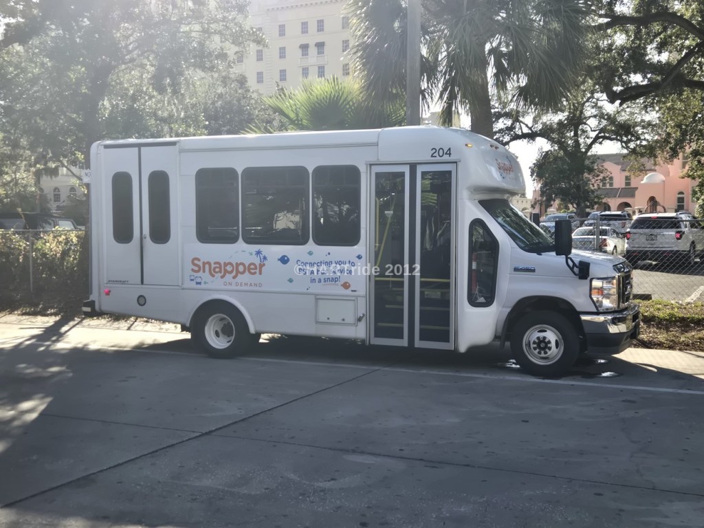 A Starcraft Allstar cutaway van (# 204) being used for the Snapper on-demand shuttle. The service is primarily handled by contract partner TransDev.