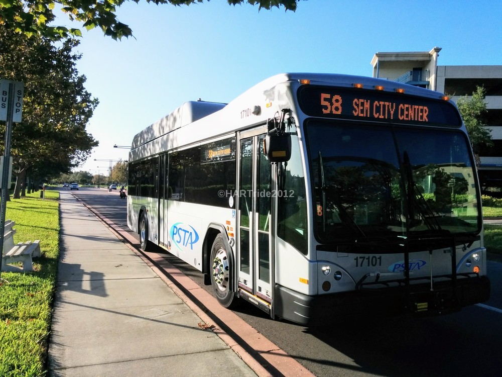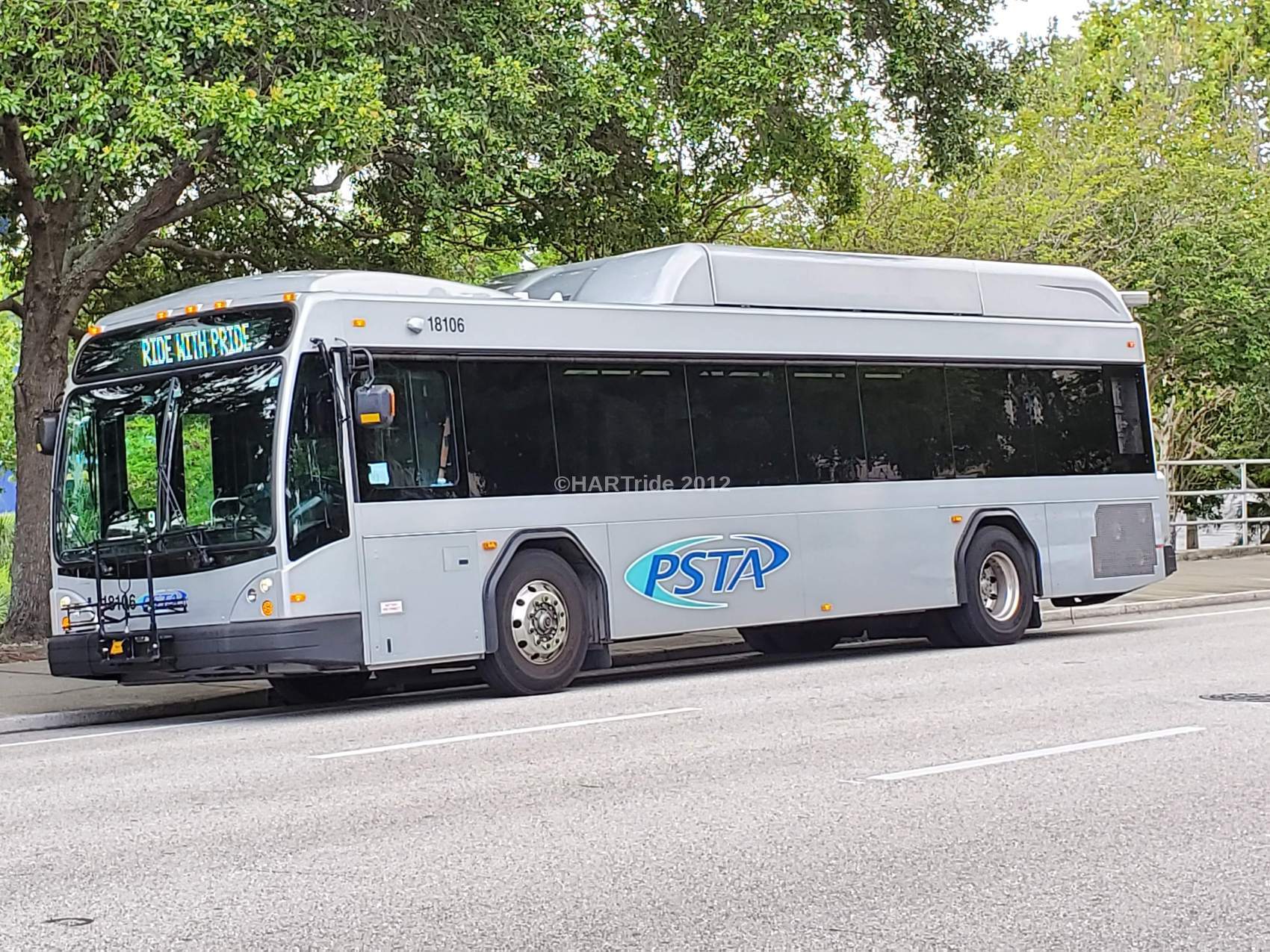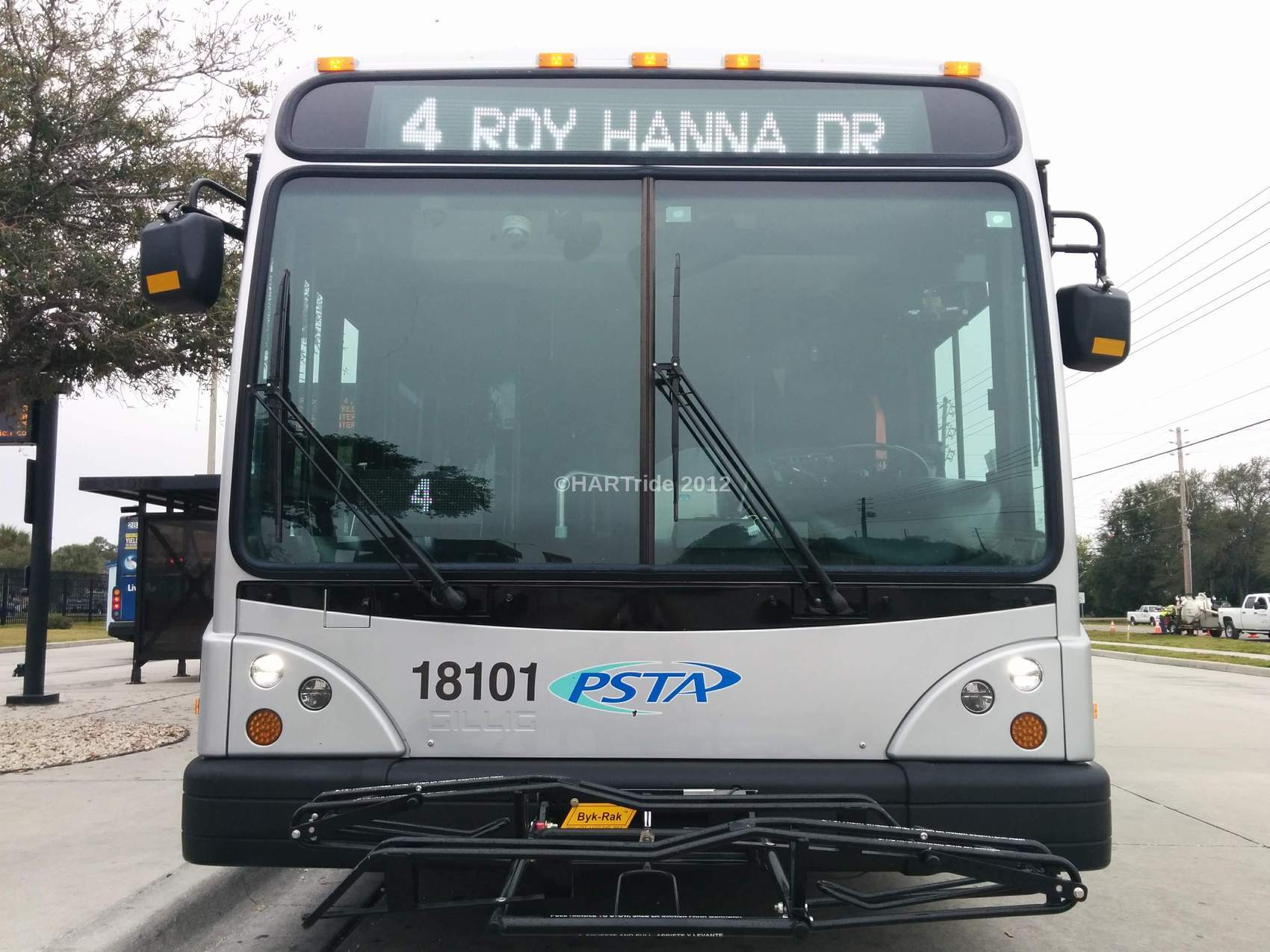 - While PSTA kept the BRT styling intact on the front end of each bus, the standard rear end was chosen instead of the curved BRT style rear. Additionally, the roof faring that helps cover the batteries has also changed.