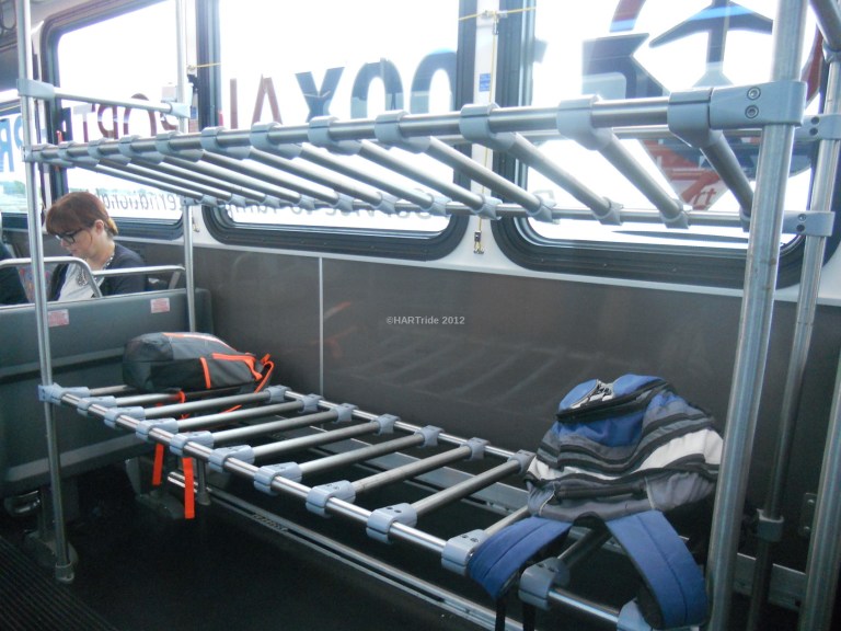 - While the interior seating configuration remains the same as the 2012 through 2015 hybrids, a different seat cushion pattern was chosen. On some buses, some seats were removed to make way for luggage racks so that they could be used on express routes.