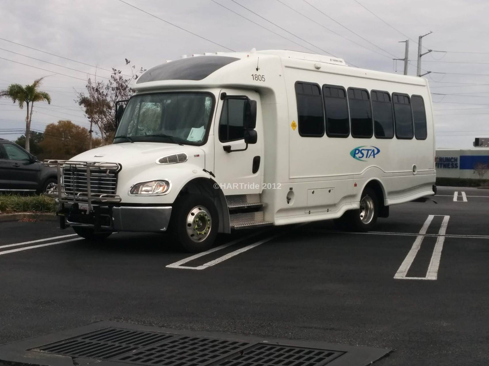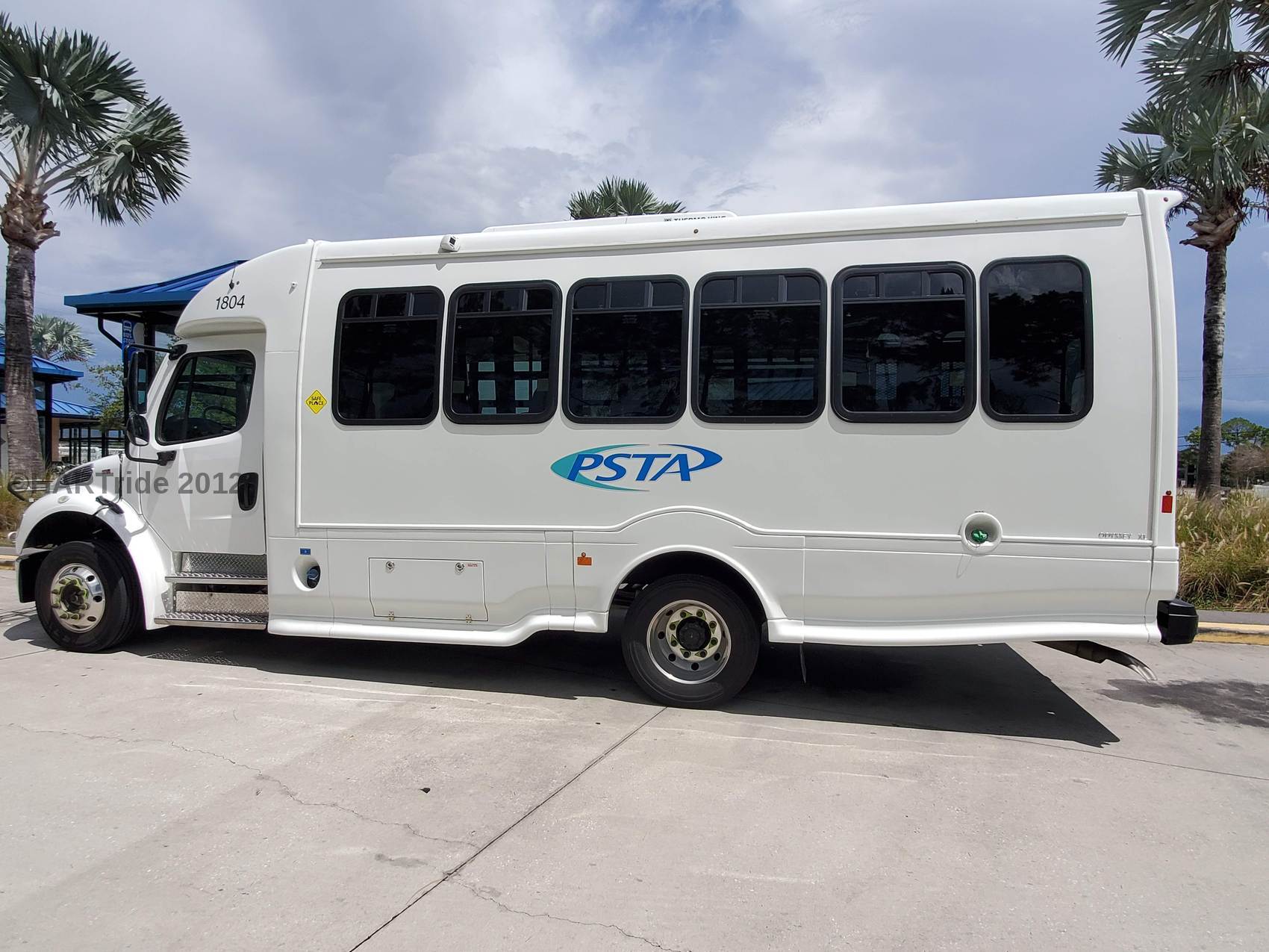 In 2017, PSTA ordered eight 27′ Freightliner Defender cutaway vans to replace the 2012 27′ Ford E-450 vans that were retired out of the fleet after only three years of service. The latter was retired early due to manufacturer defects of some sort.