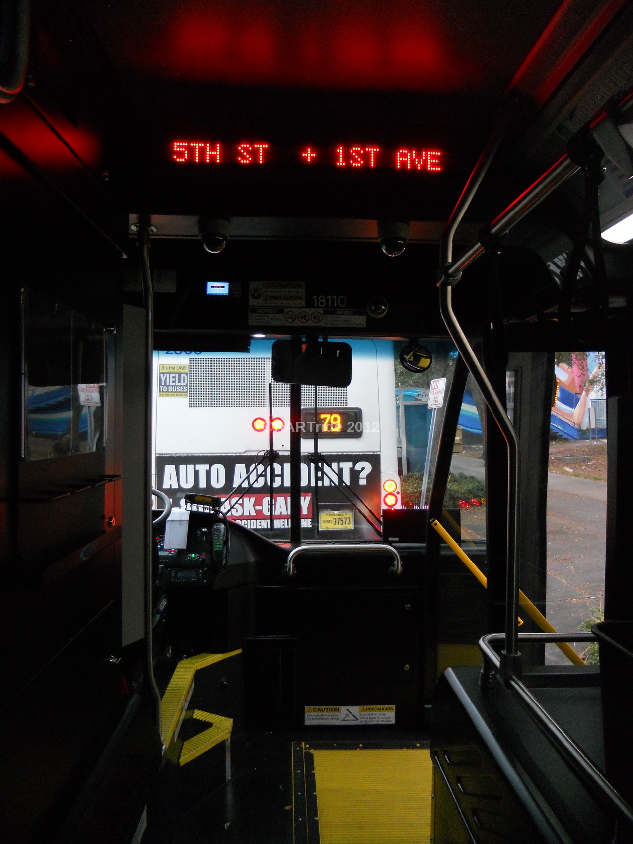 The overall design changes listed above would be carried over for the 2017 through 2019 Gillig orders. In terms of seating layout, the 2017 through 2019 orders posses a similar layout to that of the 2009 & 2010 orders. However, the seat type has changed over to American Seating’s InSight Prime product line. These seats provide a sleek, ergonomic alternative to the bucket seats used on the older buses & also allow for easier cleaning since the seat surface is completely plastic. While I did not like all plastic transit seats at first, I’ve since gotten used to them.