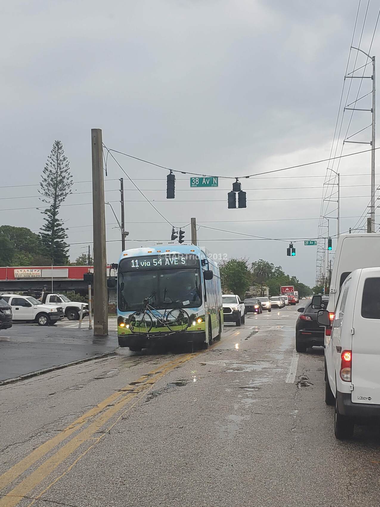 Despite reliability issues with BYD’s 60′ K11M buses in Albuquerque, NM & Indianapolis, IN, PSTA has been largely satisfied with its 35′ K9S vehicles. In 2019, the agency ordered four more K9S buses – which went into service in mid 2021. All six buses today rotate during the week alongside the Gillig diesel & hybrid buses on Route 11 – sporting new wraps. In many circumstances, Route 11 operates all four of its bus slots with the BYDs.