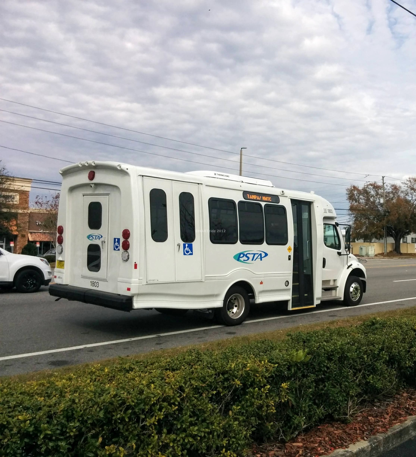 At the beginning of 2018, PSTA ordered eight new 2018-series Freightliner Defender cutaway vans, #’s 1801 through 1808. These were delivered in November, 2018 and were placed into service in January, 2019. The introduction of these vans have effectively sidelined the 30-foot Gilligs, though the latter are being retained for now used as spares if needed.