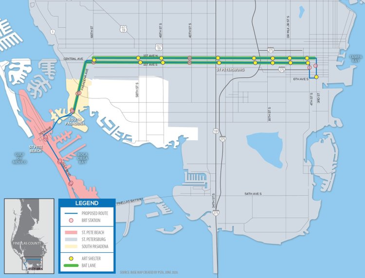 - A line that would utilize 58th St N near Pasadena between Central Ave & 5th Ave N, then trek along 5th Ave N to Tyrone Blvd before travelling up Tyrone Blvd to the interchange with Seminole Blvd in Seminole. From there, service would utilize Seminole Blvd until it turns into Missouri Ave in Clearwater.