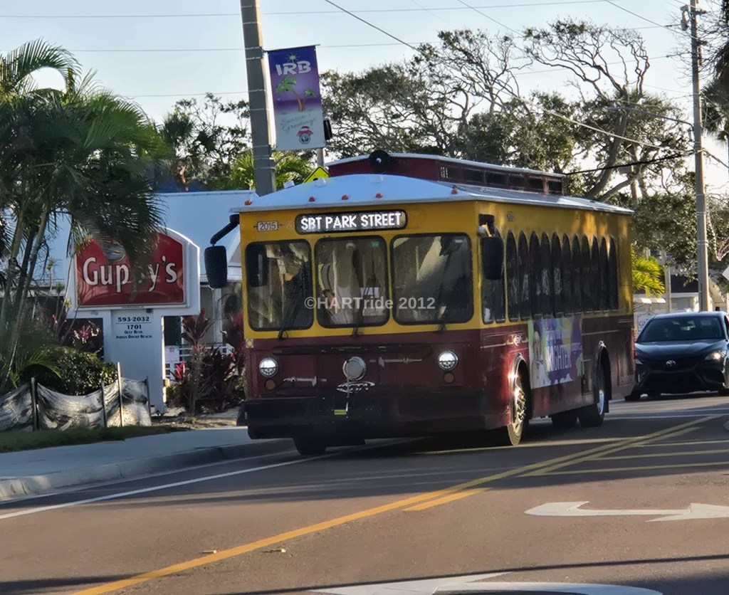 PSTA operates two trolleybus services that are primarily aimed at tourists, though many residents use the routes each day as well. In addition, PSTA lends its support to two other trolleybus services; one in downtown St. Pete, and the other in northern Pinellas. This page will go through each of the services in detail; the PSTA Suncoast Beach Trolley, the PSTA Central Ave Trolley, the St. Petersburg Downtown “Looper” Trolley, and the Clearwater Jolley Trolley.