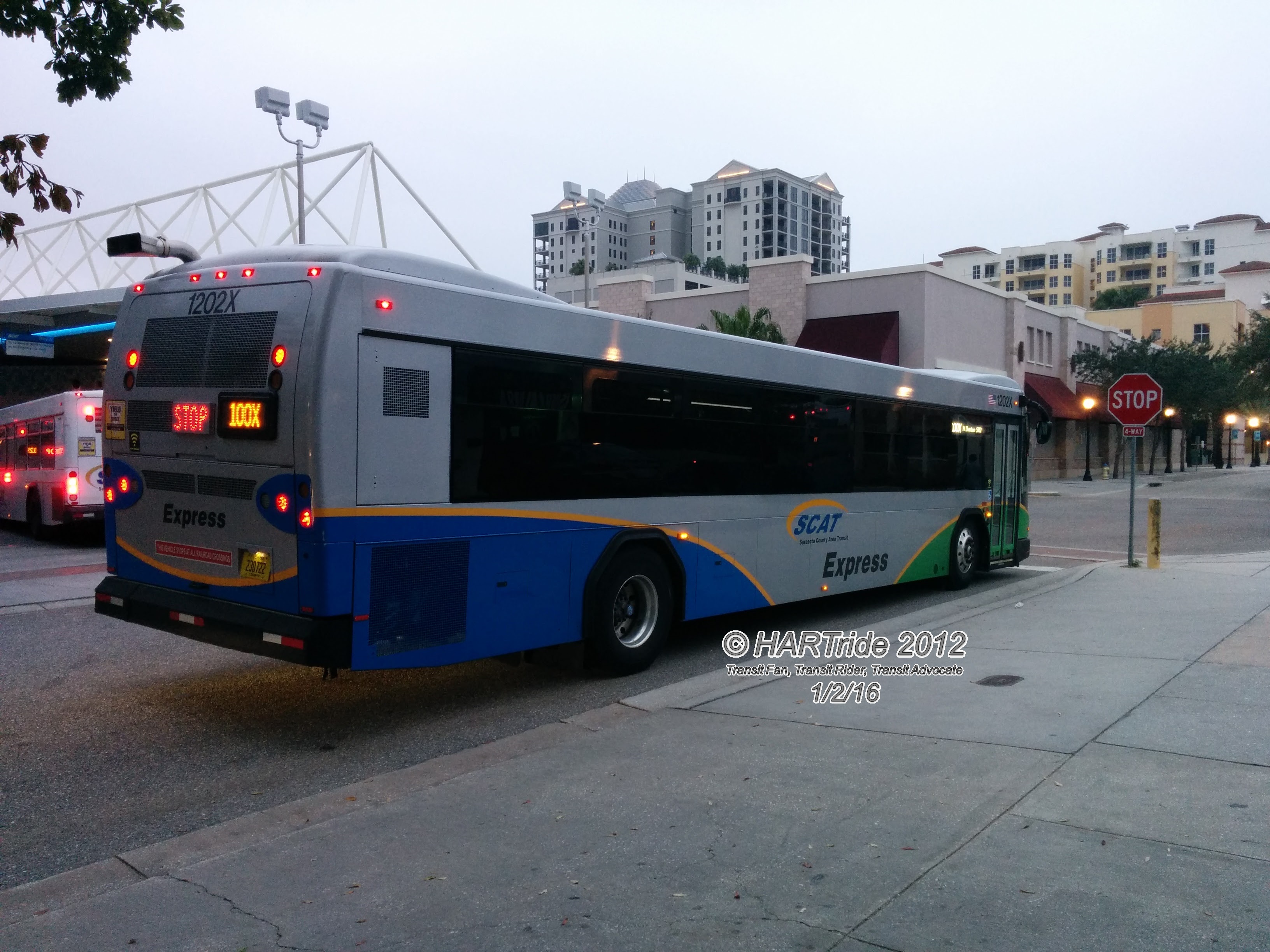 # 1202X (now # 1218 at Hillsborough Transit Authority) by the Downtown Sarasota Station.
