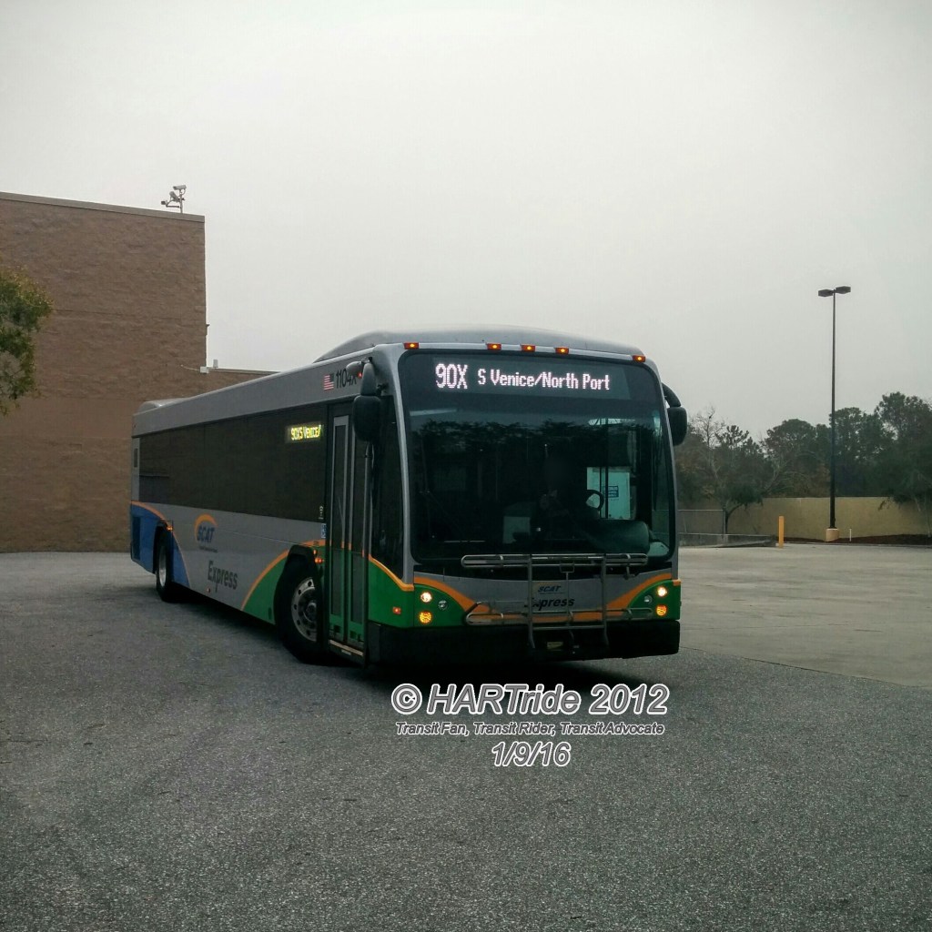 In 2010, the Breeze purchased a small fleet of 40′ Clean Diesel Gillig Low Floor BRT Suburban transit buses in anticipation of launching express service between Sarasota, Manatee, & Hillsborough Counties. These buses were different from the standard Low Floors in that they have plush, high-back seating, luggage racks, and a single entry/exit door. When plans for the intercounty express routes fell through, the Breeze kept the buses for intracounty express routes 80X, 90X, & 100X instead. While the reason for the intercounty express plan failing is unknown, my long-held suspicion is that the Florida Department of Transportation (FDOT) refused to grant Breeze state Urban Corridor Program funding for the service. This is the same state-level operational grant funding that has been used to help maintain PSTA Route 100X & 300X services.